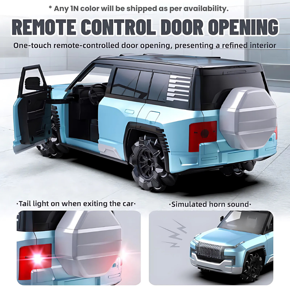 The Moka U8 1:12 RC Car is more than just a toy – it’s a perfect blend of innovation, style, and performance. With its futuristic SUV design, roller wheels for 360° drifting, remote-controlled doors, and dynamic LED headlights, this electric RC car delivers a real racing thrill for kids and hobbyists alike.