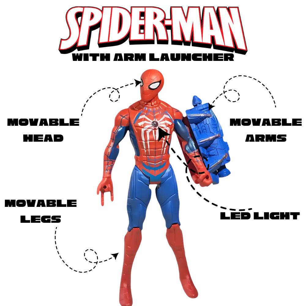 Swing into action with this Spiderman action figure! Featuring a glowing red LED light in the chest and a powerful arm launcher, this toy is perfect for thrilling superhero battles and imaginative play for kids aged 3 and above.
