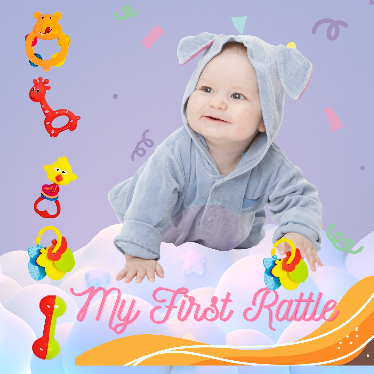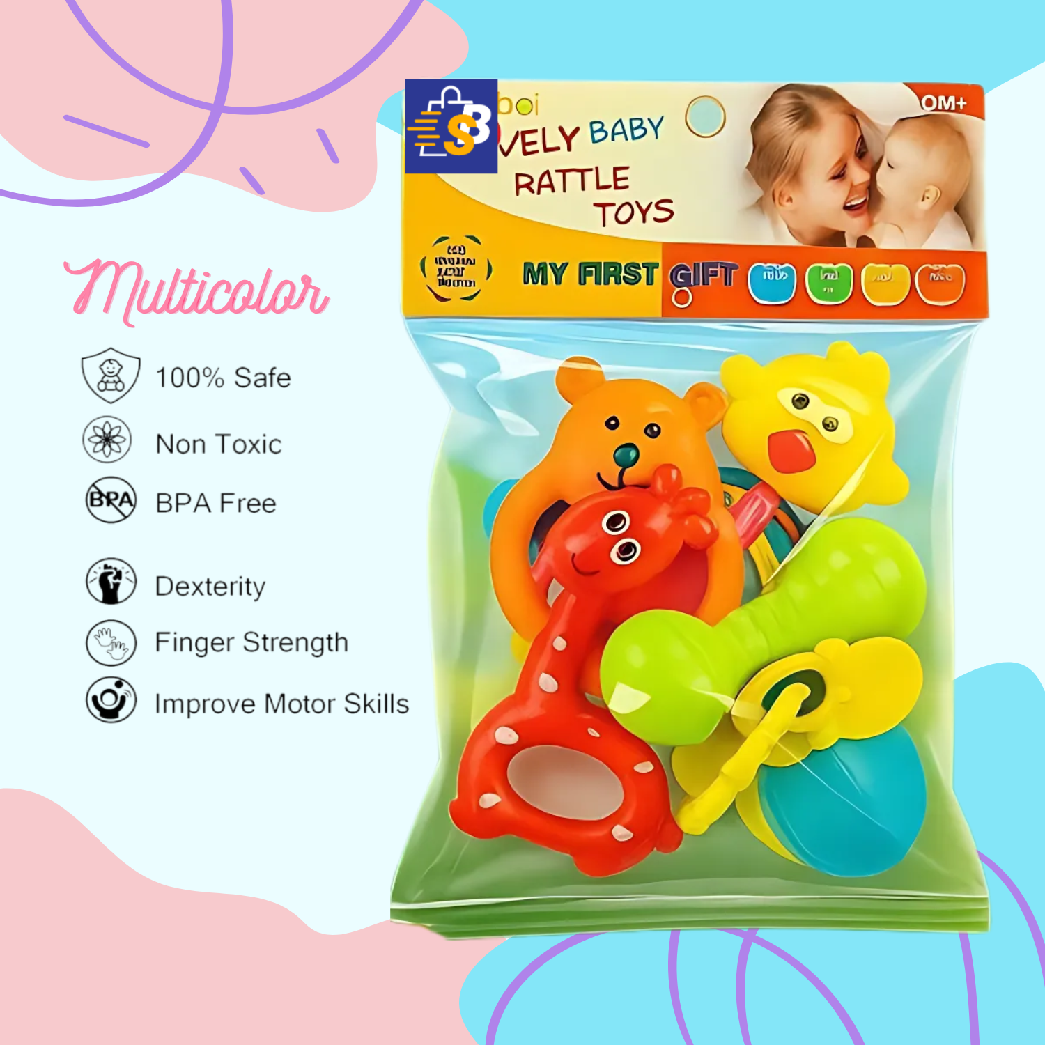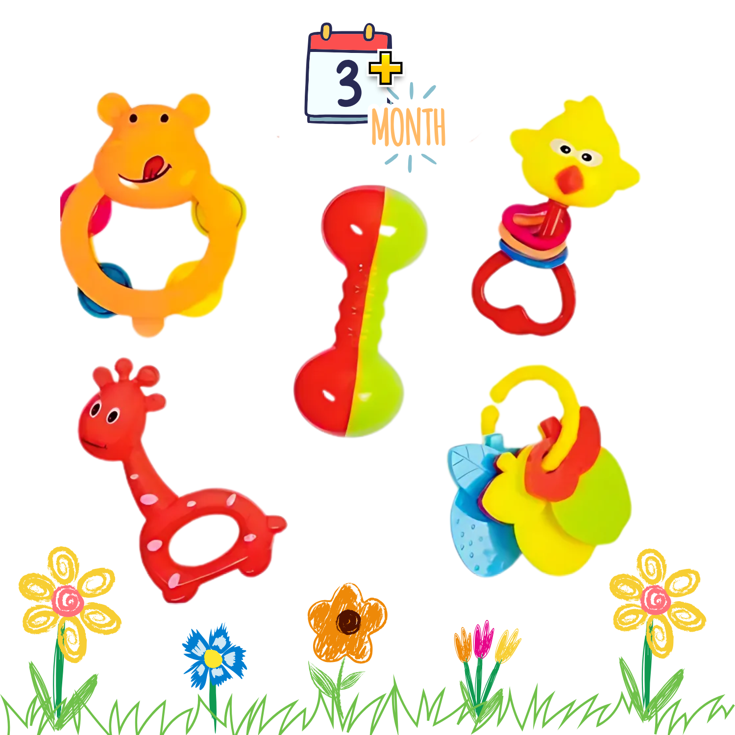 Give your newborn the gift of sound, texture, and color with this adorable 5-piece Baby Rattle Set. Designed for infants aged 0+ months, each rattle is made from BPA-free, non-toxic plastic and shaped into fun animals and playful designs. These lightweight, easy-to-hold rattles encourage sensory exploration and motor skill development from the very first days. A perfect addition to your baby’s early learning toy collection or a thoughtful gift for new parents.
