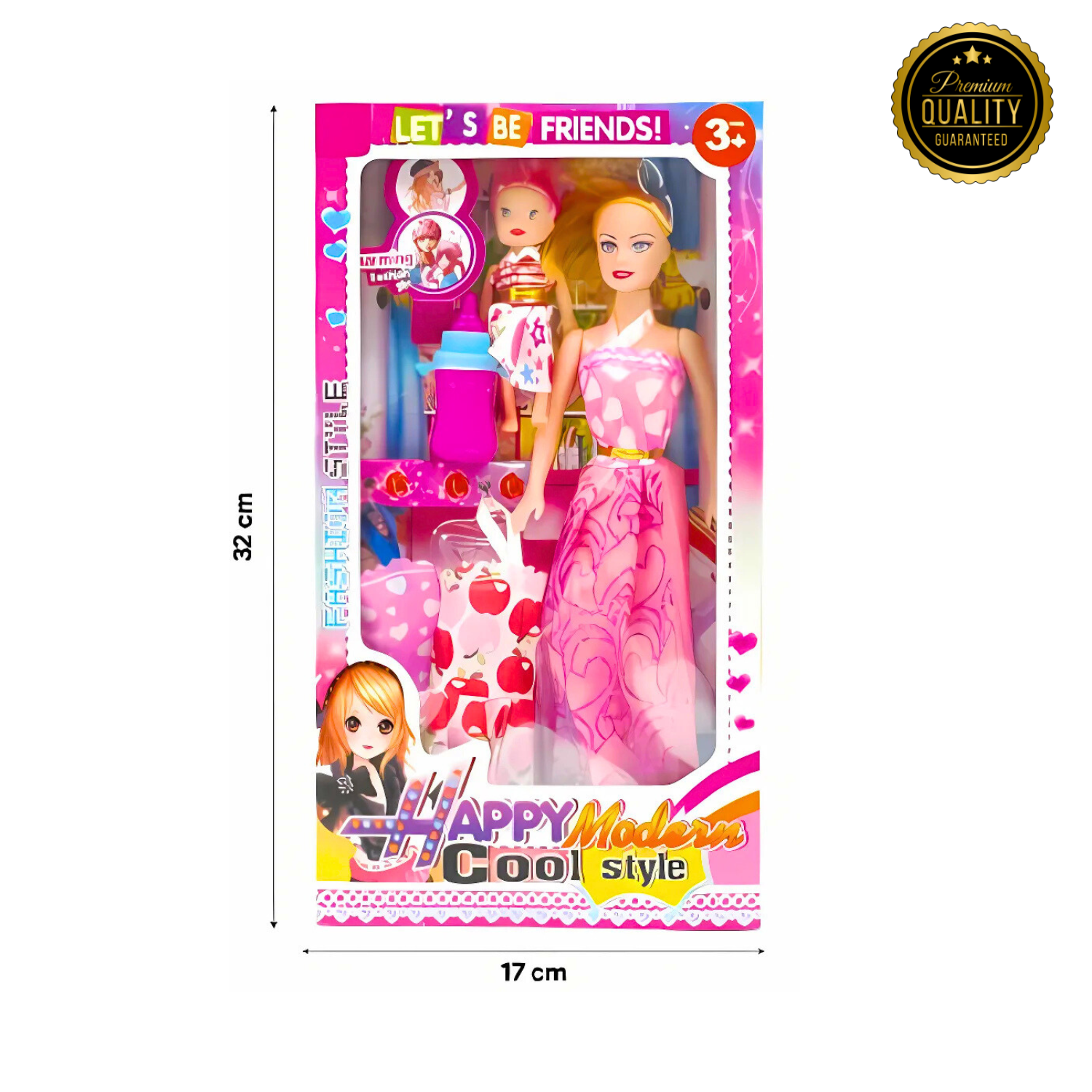 Bring home endless fun and creativity with this stylish fashion doll set, complete with a baby doll, extra dresses, and play accessories. Perfect for pretend play, this set encourages storytelling, role-play, and fine motor skills. Made from safe, child-friendly materials, it’s a delightful gift for kids aged 3 years and above.
