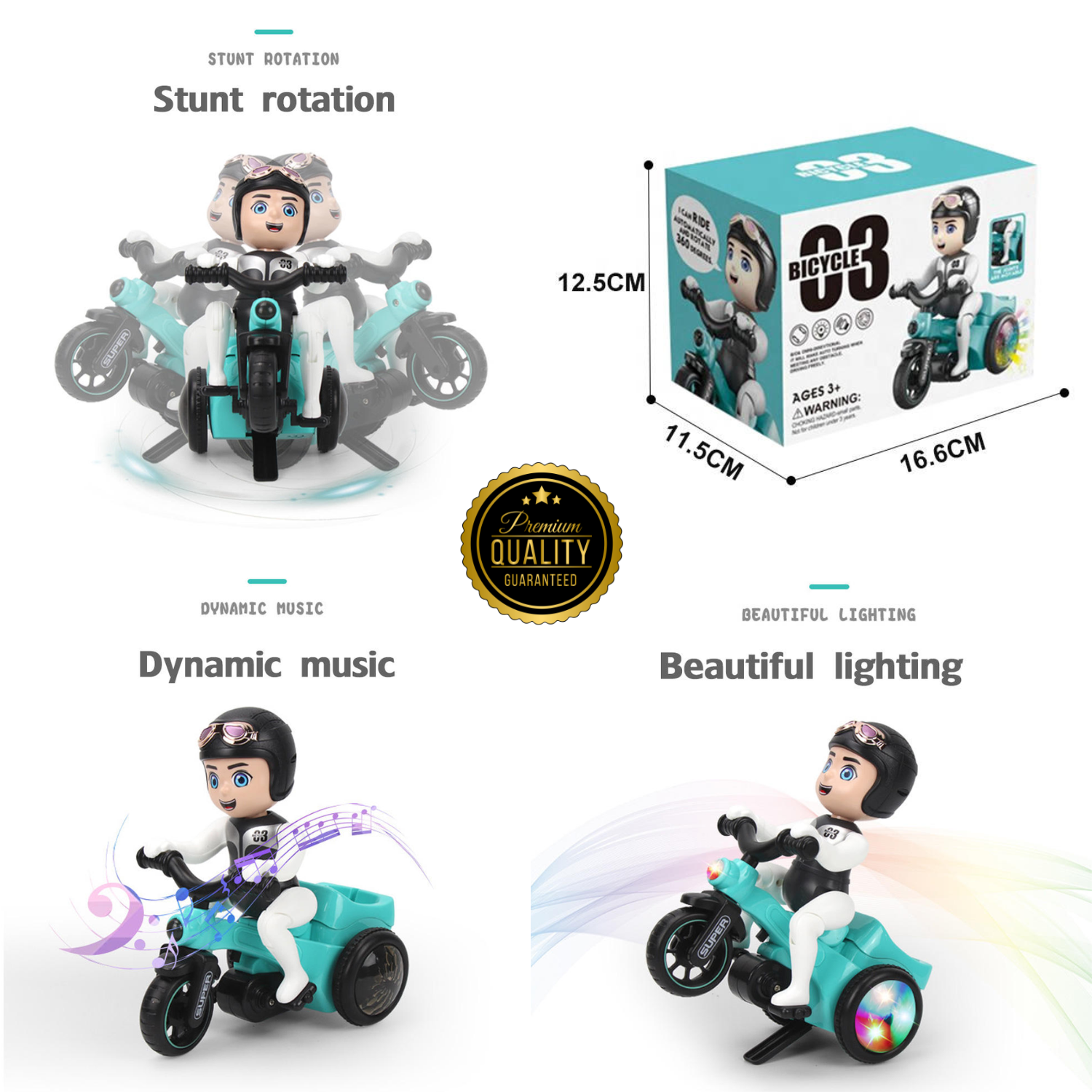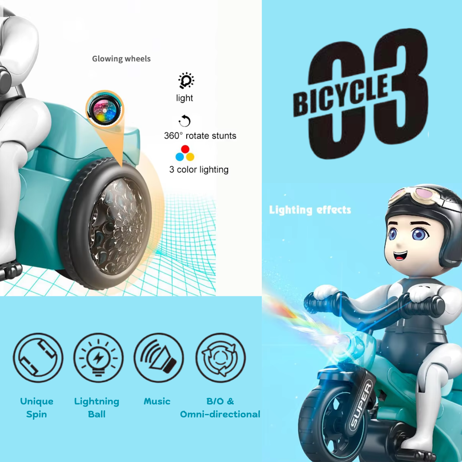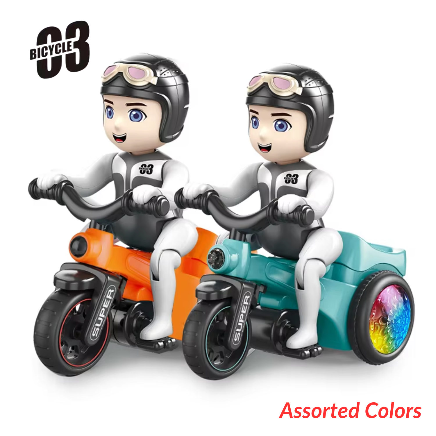 Fuel your child’s excitement with the 03 Bicycle Go Toy – a fun-packed entertainment vehicle that flashes lights, plays music, and spins in all directions! This battery-operated toy features a cool rider figure on a futuristic bicycle that moves automatically and performs 360° rotation with vibrant lighting effects. Designed for kids aged 3 and above, this interactive toy enhances sensory engagement and keeps little ones entertained for hours. A great gift choice for birthdays, holidays, or return gifts!