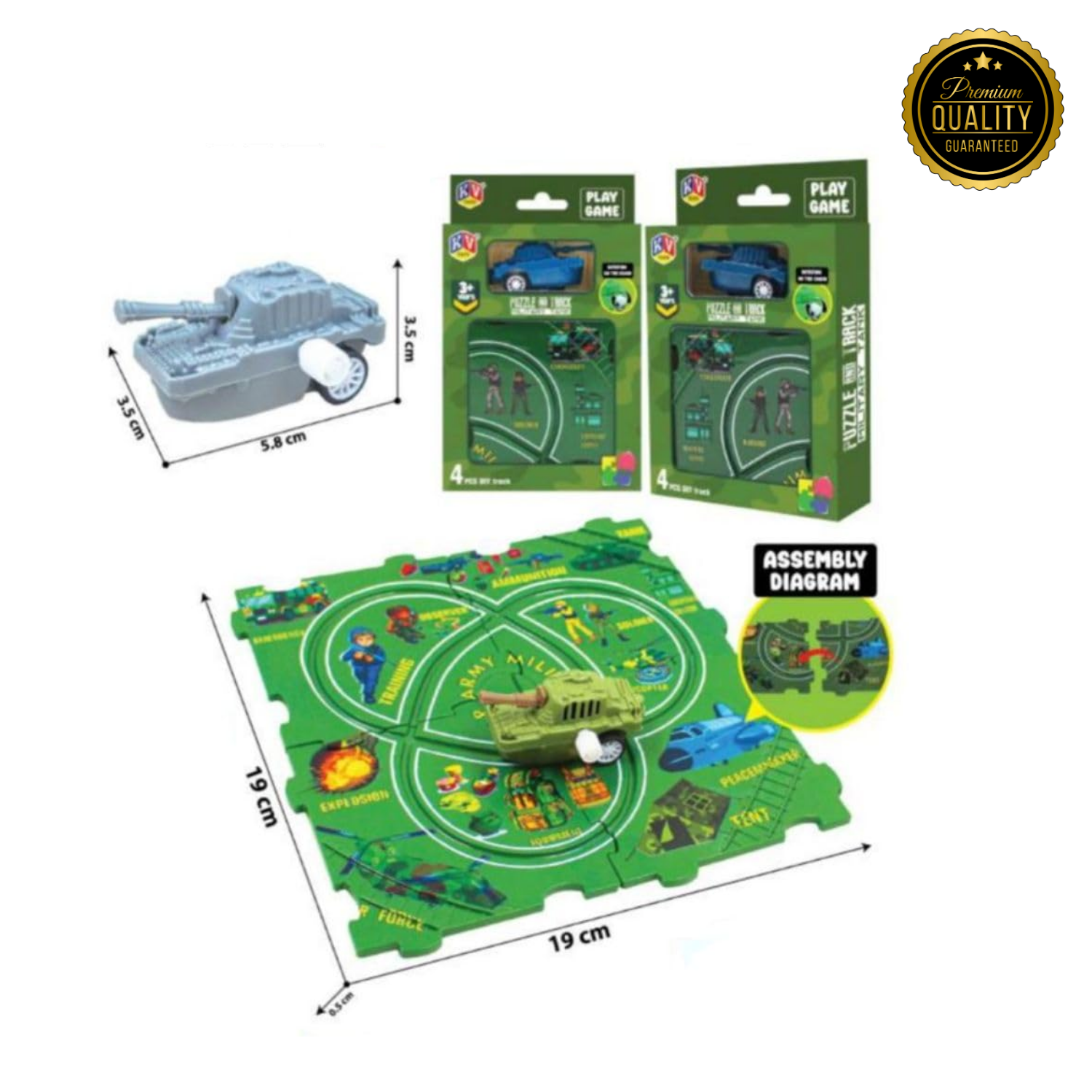 The KV Toys Puzzle and Track 4Pcs DIY Set is a fun and educational toy designed for children aged 3 years and above. With two exciting designs—Battleship and Military Tank—kids can explore creative play while assembling and rotating the pieces on the chain. This manual, key-operated puzzle requires no batteries, making it safe and environmentally friendly. Each set includes 4 puzzle boards to create a track and encourage problem-solving, imagination, and fine motor skills. Colors will be shipped based on availability, adding a surprise element to every order. Perfect for indoor play, birthday gifts, or party favors.