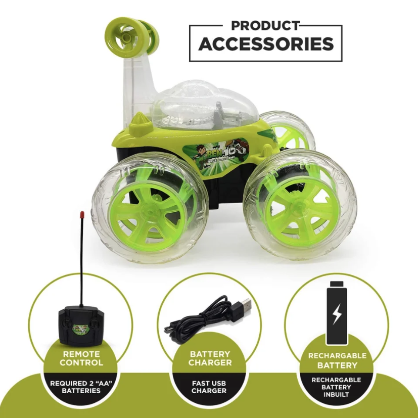 • Watch the Car Spin, Flip & Light Up with high-speed performance and bump & go action.